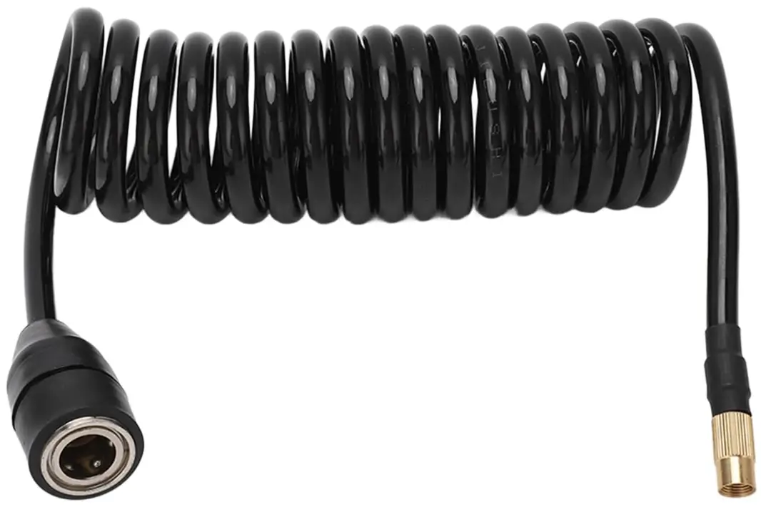 This 9.84ft polyurethane recoil air hose is designed to extend the reach of portable air compressors for easy tire inflation. The flexible PS20 material resists kinks and quickly recoils for compact storage after use. Compatible with standard American tire nozzles, it works perfectly for cars and motorcycles alike