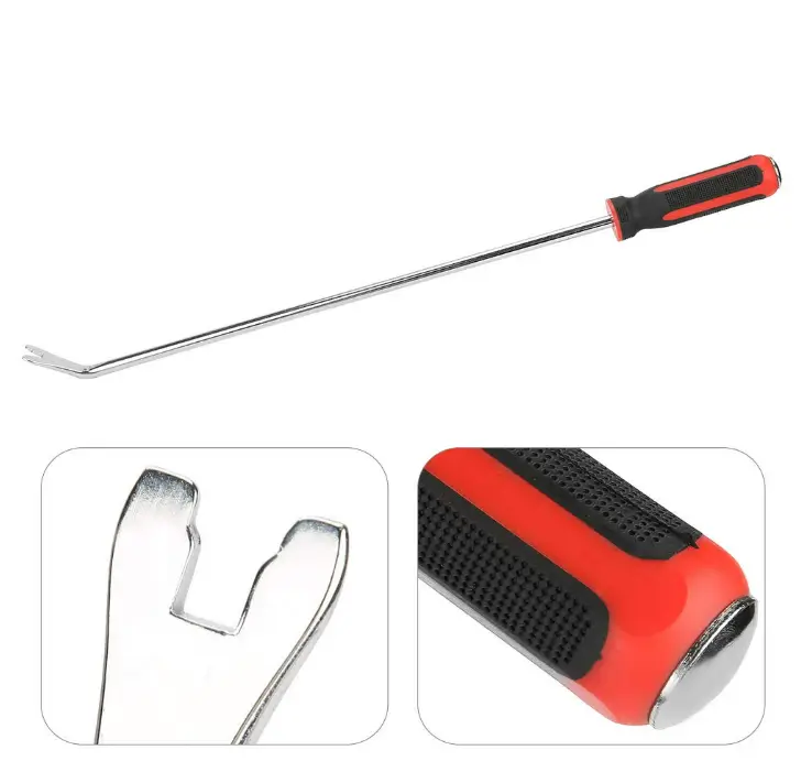 This long automotive clip remover is designed to safely remove trim, rivets, and fasteners without damaging panels or upholstery. The heavy-duty construction provides excellent leverage, making it easier to release stubborn clips with less effort. Its extended reach is especially useful for car door panels and hard-to-access areas, saving time during repairs and installations