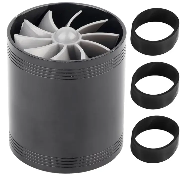 This dual-turbine air intake turbonator is designed to improve airflow efficiency for smoother acceleration and better throttle response. The universal design fits most vehicles and installs easily inside the air intake hose without major modifications. Made for durability, it helps optimize air intake performance while maintaining stable engine operation